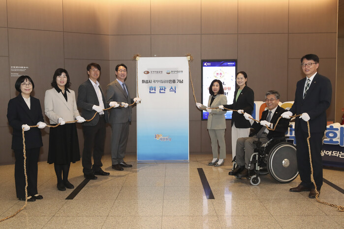 [로컬세계=임종환 기자]경기 화성시가 12일 시청 로비에서 국가지질공원 신규 인증을 기념하기 위한 현판식을 개최했다.