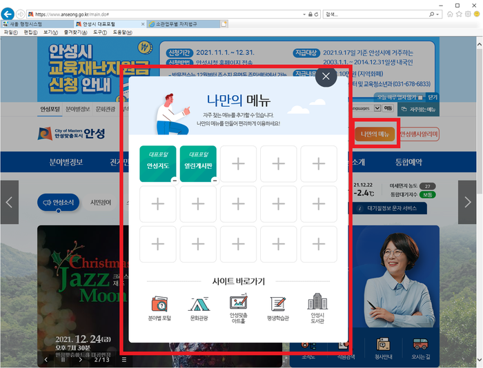 | ▲시 홈페이지 개선-나만의메뉴 기능. 안성시 제공 |