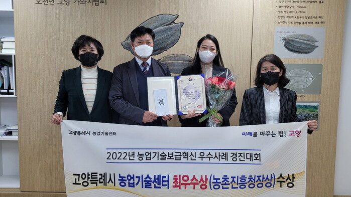 | ▲ ‘2022년 농업기술보급혁신 우수사례 경진대회’ 최우수상 농천진흥청장상 수상. 고양시 제공 |