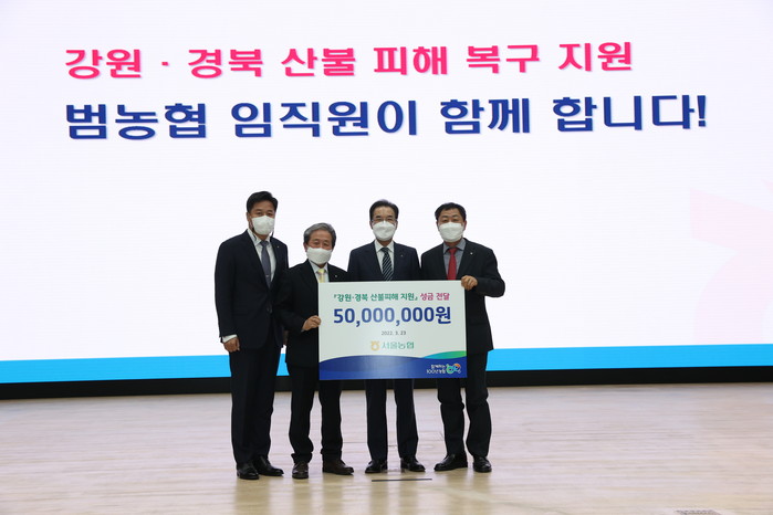 한명철 의장은 “갑작스러운 산불로 큰 피해를 입은 이재민들께 깊은 위로와 안타까운 마음을 전하며, 서울농협의 응원과 마음이 일상으로 빠르게 복귀하시는데 작은 도움이 되길 바란다”고 말했다.