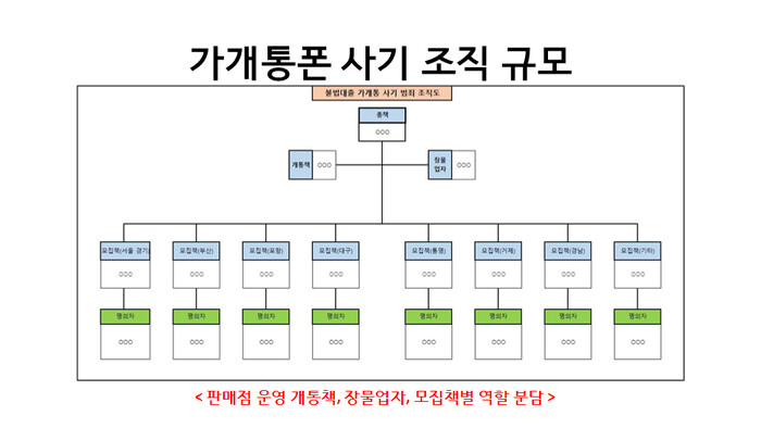 A씨는 휴대폰 대리점을 위탁 운영하면서 각 지역의 모집책들을 동원해 2020년 7월경부터 지난해 5월경까지 약 3년여 동안 영세상인 등 총 319명의 피해자 명의로 896대의 가개통폰을 개설해 중고폰 업자에게 팔아넘기고, 통신사로부터는 개통수당까지 받아 챙긴 것으로 드러났다.