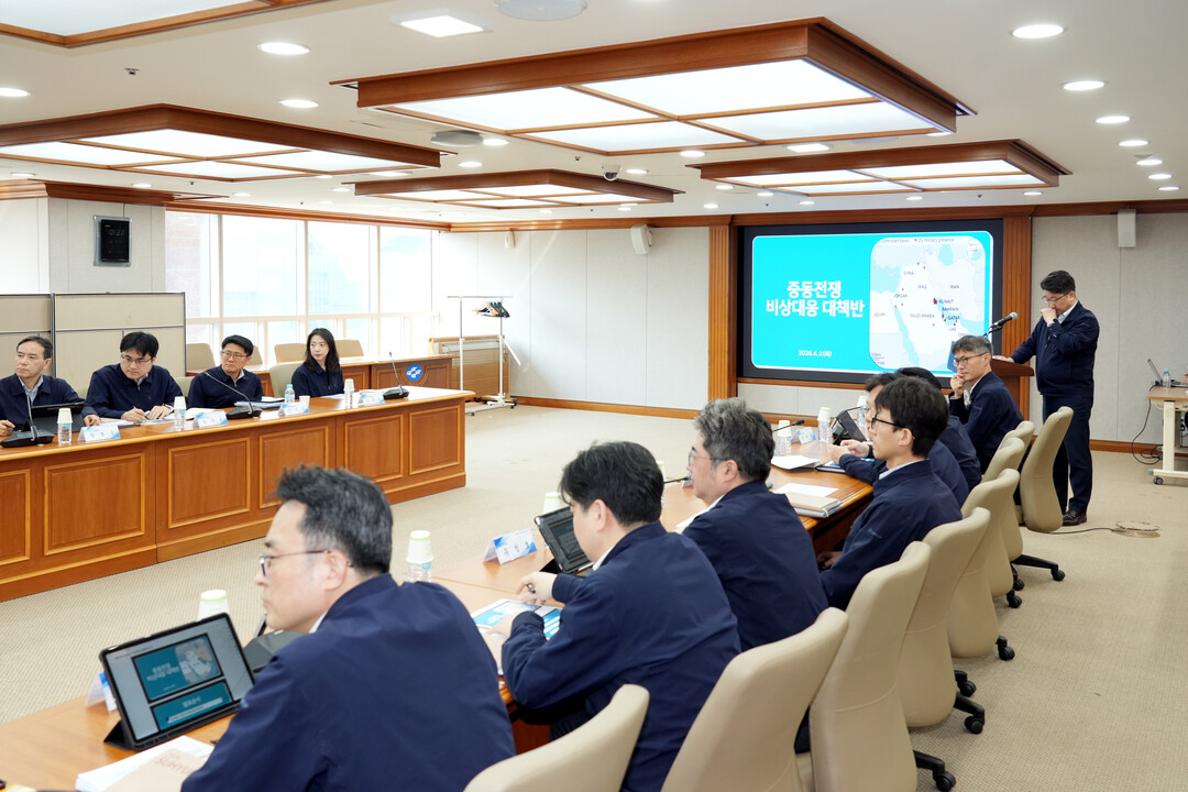 2일 노동진 수협중앙회장이 중동전쟁 비상 대응대책반 회의를 주재하고 있다.