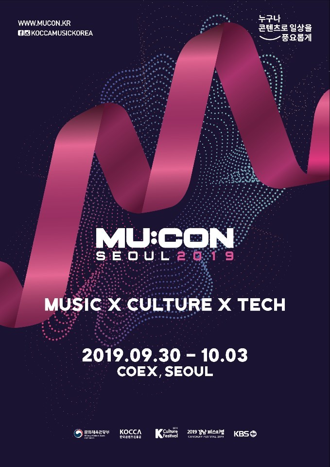 문화체육관광부(장관 박양우)와 한국콘텐츠진흥원(원장 김영준, 이하 콘진원)은 오는 9월 30일부터 10월 3일까지 4일간 서울 강남구 코엑스 일대에서 열리는 ‘2019 서울국제뮤직페어(MU:CON 2019 이하 뮤콘 2019)’의 1차 라인업을 공개했다.