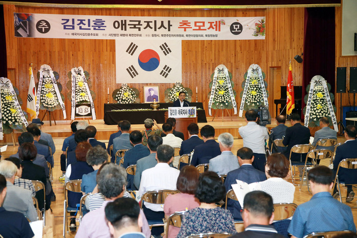 김진훈 애국지사 추모제(회장 박영복)는 15일 의창구 북면 창북중학교대강당에서 허성무 창원시장, 국회의원, 도·시의원, 기관단체장, 유족 등 200여명이 참석한 가운데 엄숙히 열렸다.