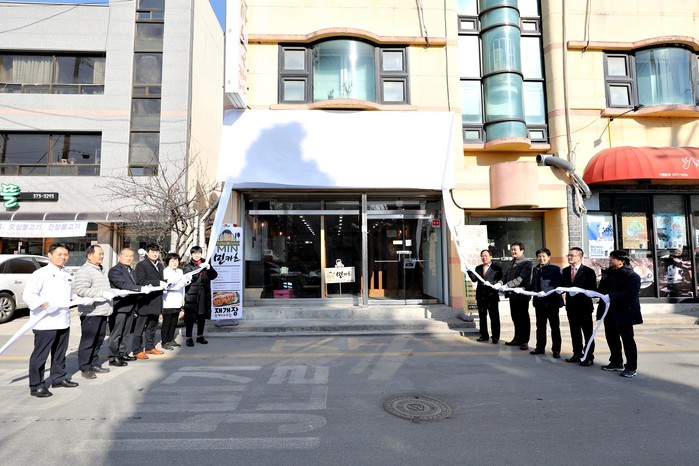 ▲강원랜드희망재단의 ‘정·태·영·삼 맛캐다!’ 프로젝트 6호점인 ‘민카츠’가 25일 영월군에서 개장식을 가졌다.(강원랜드 제공) |