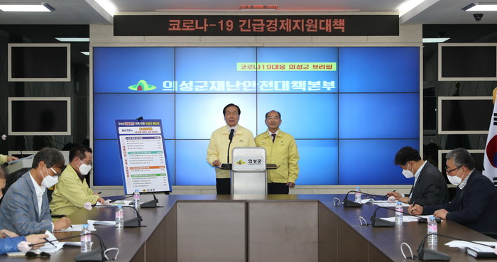 김주수 의성군수는 30일 군청 재난종합상황실에서 브리핑을 열고 코로나19 사태로 위축된 지역 경제를 위해 △민생 경제 안정 171억원 △소상공인‧중소기업 회복 64억원 △긴급 농업경영안정 30억원 △감염병 치료 및 대응 인프라 개선 35억원 △지역경제 회복을 위한 감면혜택 확대에 6억원 등을 지원하겠다고 밝혔다.