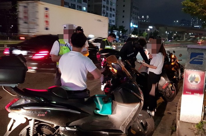 지난 26일 밤 문현교차로에서 진행된 단속에서 안전모 미착용, 음주운전, 무등록 운행 등 5명을 적발했다.