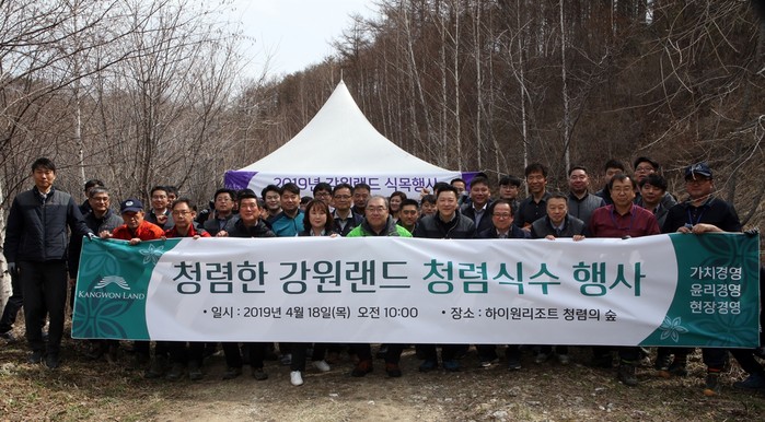 [로컬세계 박상진 기자]강원랜드(대표이사 문태곤)는 18일 하이원리조트 내 청렴의 숲에 조성된 산책로에서 임직원들의 청렴의지를 담은 ‘청렴한 강원랜드’ 식수행사를 개최했다고 밝혔다.