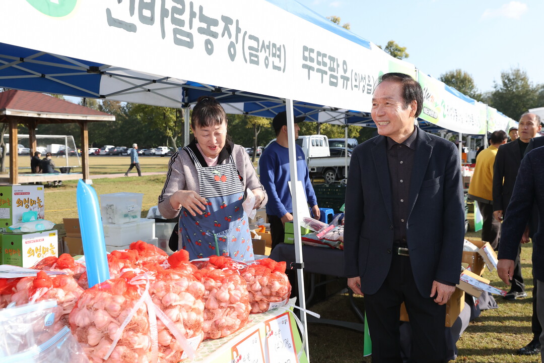 행사에는 총 39개 농가 및 업체가 참여해 의성마늘, 사과, 건고추, 참깨, 가지, 잡곡류, 흑마늘, 장류, 참기름, 고춧가루 등 80여 종의 농·특산물을 선보였다. 의성마늘소 등 축산물도 판매됐으며, 직거래 방식으로 시중가 대비 10~20% 저렴하게 제공돼 큰 호응을 얻었다.