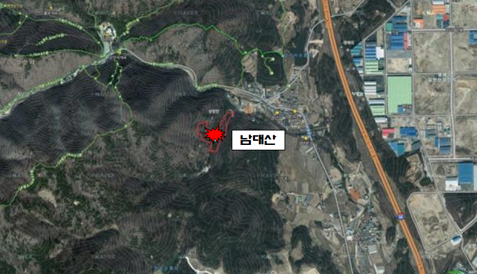 | ▲산불이 난 부산시 장안사 남대산 위치.(부산시 제공) |