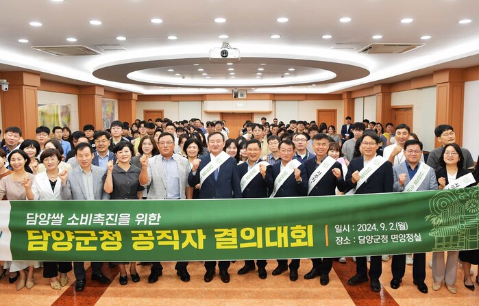 담양군은 지난 2일 군 공직자 2백여 명이 참석한 9월 정례 조회에서 쌀 소비 촉진 결의대회를 열고 ‘담양 쌀을 사고, 먹고, 선물하자’는 결의를 다졌다.