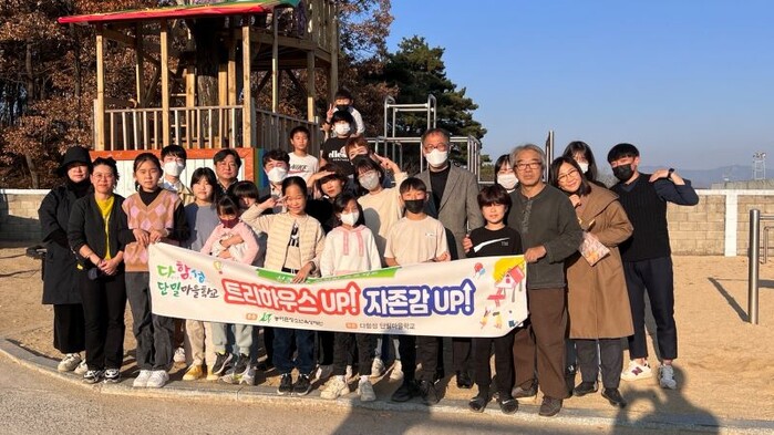 이 프로그램은 농어촌청소년육성재단의 성큼성큼 꿈자람 프로젝트 지원사업으로서 올해 3월 공모를 통해 선정돼 사업비를 지원받아, 지난 10월 7일부터 11월 18일까지 마을학교 아이들 13명과 지역화가 최수환 작가, 단밀 팔자 어머니회와 함께 10회에 걸쳐 과정중심 활동 프로그램 “트리하우스 UP! 자존감 UP!”을 진행했다.
