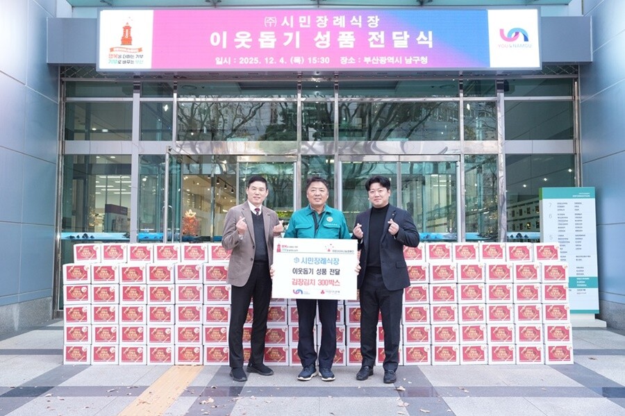 [로컬세계 = 맹화찬 기자] 매년 지역사회에 온정을 나누는 시민장례식장은 올해도 어김없이 ‘사랑의 김장 김치’ 300박스를 부산시 남구에 전달했다고 8일 밝혔다.