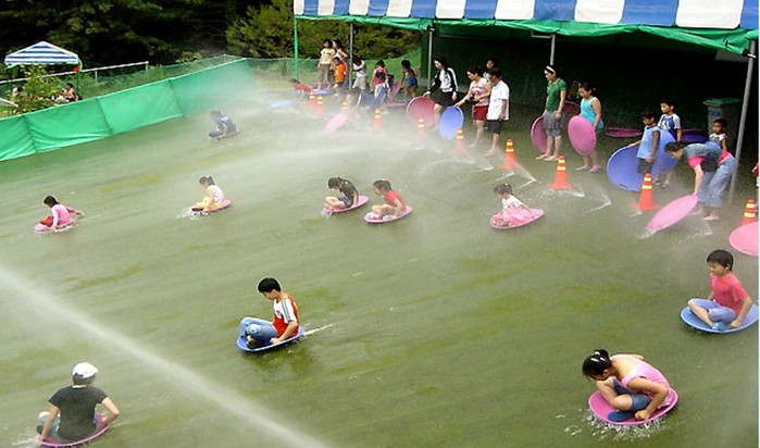 썰매를 겨울에만 타야 한다는 법은 없다. 가평군 상면에 소재한 ‘가평 사계절썰매장’은 한 여름에도 청정 자연을 즐기며 썰매를 즐길 수 있도록 물썰매장을 운영 중이다. 방문객들은 106m 길이 20도 경사각의 슬로프 위에 올라 분수처럼 쏟아지는 물을 맞으며 스릴감을 만끽할 수 있다.