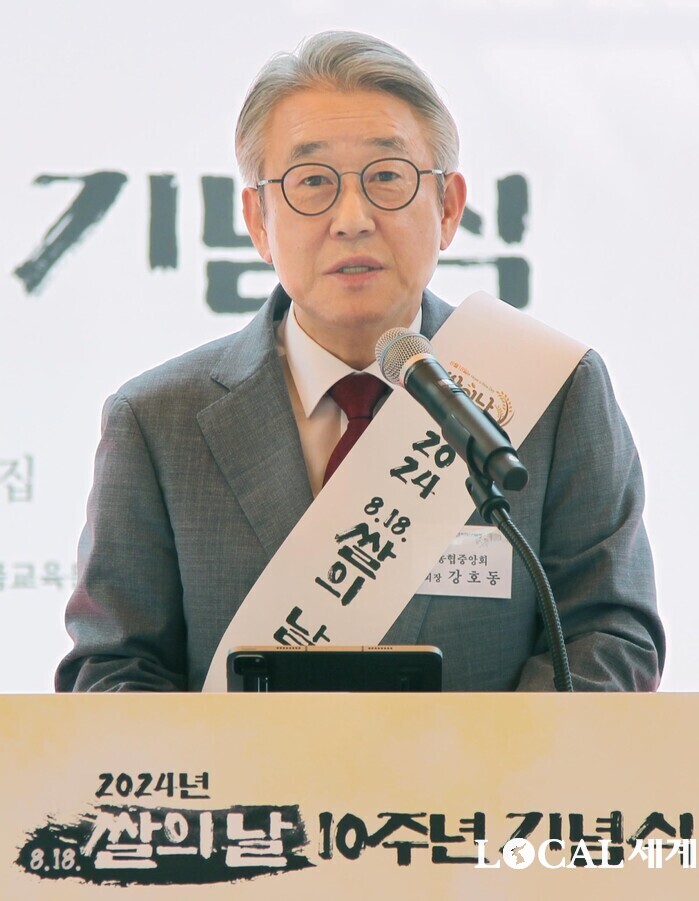▲농협은 14일 농림축산식품부와 함께 서울 중구 충무로 ‘한국의 집’에서 범국민 쌀 소비촉진 붐 조성을 위한 ‘2024 쌀의 날(8.18.) 10주년 기념행사’를 개최했다. 강호동 농협중앙회장이 인사말을 하고 있다. |