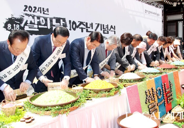 농협(회장 강호동)이 14일 농림축산식품부(장관 송미령)와 함께 서울 중구 충무로 ‘한국의 집’에서 범국민 쌀 소비촉진 붐 조성을 위한 ‘2024 쌀의 날(8.18.) 10주년 기념행사’를 개최했다.