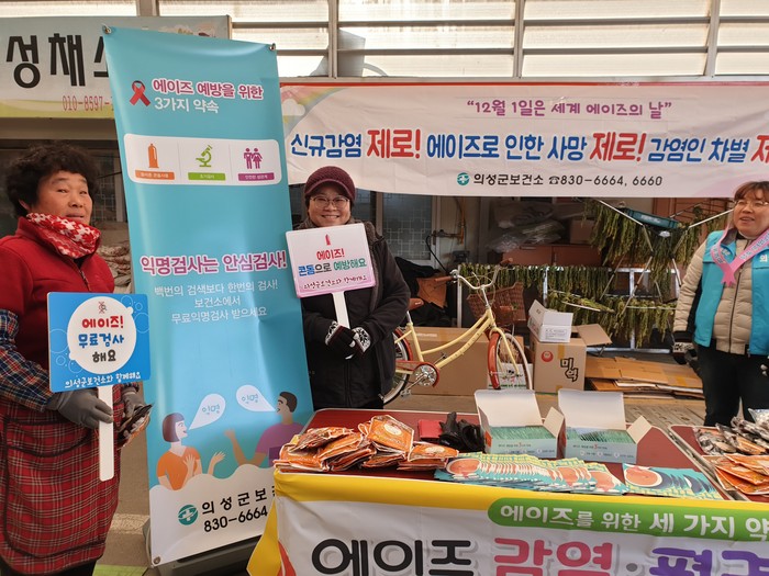 [로컬세계 박상진 기자]경북 의성군(군수 김주수)은 2일 오전 10시, 의성전통시장내에서 제32회 세계 에이즈의 날을 맞이해 ‘신규감염 제로! 에이즈로 인한 사망 제로! 감염인 차별 제로!’라는 주제로 홍보부스를 운영하고 캠페인도 진행했다.