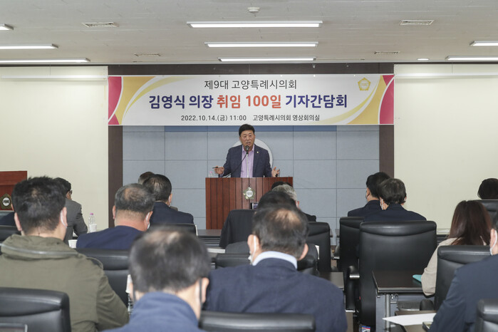 [로컬세계 = 이영원 기자] 제9대 고양특례의회 김영식의장이 취임한지 100일을 맞아 10월 14일 의회 영상회의실에서 기자간담회를 개최했다.