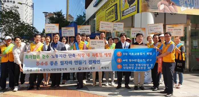 캠페인에는 노사민정협의회 위원 및 고용노동부경기지청 관계자, 화성시 일자리정책과, 한국노총 화성시역지부 등 30여 명이 참여해 5인 미만 영세사업장 및 산업현장 관계자를 대상으로 소규모 건설현장 안전장비를 전달했다.
