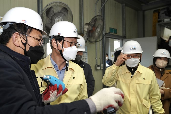 김 구청장은 수성구생활자원회수센터 종사자들의 안전관리 실태 및 유해.위험 요인을 직접 확인·점검하고 안전보건에 관한 개선 건의사항 등 현장 근로자들의 의견도 직접 청취했다.