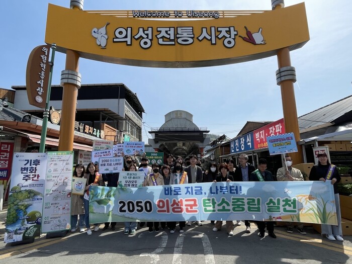 [로컬세계=박상진 기자]경북 의성군은 기후변화주간을 맞아 군민들에게 탄소중립에 대한 인식 제고 및 생활실천방안을 안내하기 위해 27일 의성전통시장에서 탄소중립생활실천 행사를 실시했다고 밝혔다.