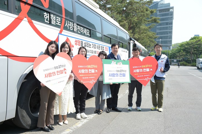 농식품 전문매장 농협 하나로마트를 운영하고 있는 농협유통(대표이사 신영호)은 창립 27주년을 맞아 코로나19에 따른 혈액수급 문제 해소에 앞장서고 이웃과 생명을 나누는 사회적 책임을 다하기 위해 임직원 60여 명이 헌혈에 나섰다.