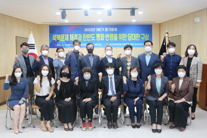 [로컬세계=박상진 기자]경북 의성군(군수 김주수) 민주평화통일자문회의 의성군협의회(회장 신기호)는 15일 의성군종합지원센터 3층 대회의실에서 자문위원 등 25명이 참석한 가운데 2022년 3분기 국내 정기회의 및 통일의견수렴을 개최했다.