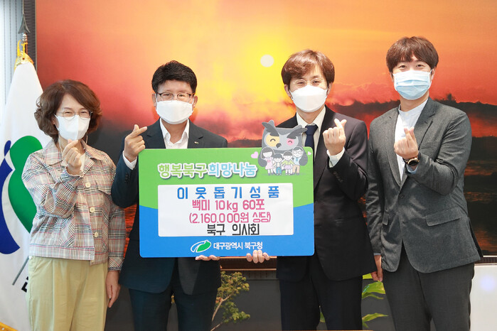 이날 전달식에는 배광식 북구청장과 김정수 회장, 북구 보건소 이영숙 소장이 참석하였으며, 우리지역의 기부문화 확산과 복지사각지대 해소 등 다양한 의견을 나누었다.