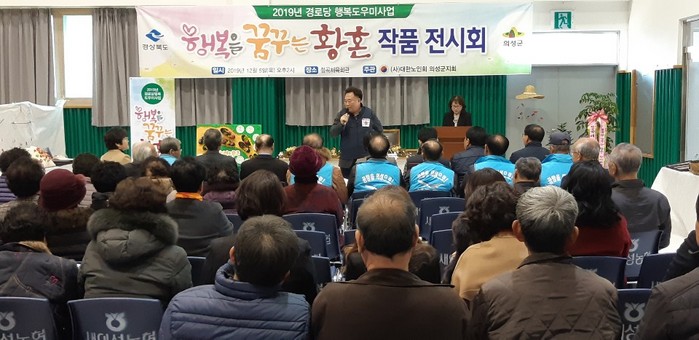 [로컬세계 박상진 기자]경북 의성군은 지난 5일 점곡면 체육관에서 ‘행복을 꿈꾸는 황혼’을 주제로 어르신들이 경로당 행복도우미사업을 통해 직접 만든 작품을 전시하는 뜻깊은 행사를 가졌다고 9일 밝혔다.
