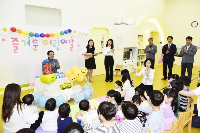 노 회장은 지난 3일 김기성 수협중앙회 대표이사와 함께 직장내 어린이집인 ‘아라맘’ 어린이집을 방문해 원아들에게 기념선물과 함께 축하의 말을 전했다.