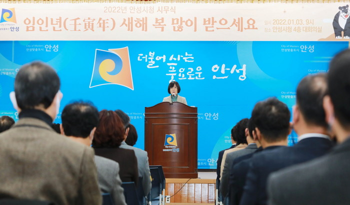 [로컬세계 김병민 기자]경기 안성시는 1월 3일 안성시청 4층 대회의실에서 2022년도 시무식을 개최하고 새해 업무를 시작했다.