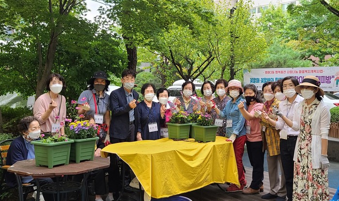 한 어르신은 “우리의 팀이 만든 꽃 화분이 예쁘다”며 “경로당 앞에 두고 물을 주며, 아파트 주민들이 아름다운 꽃들을 보고 힐링할 수 있도록 하겠다”고 말했다.