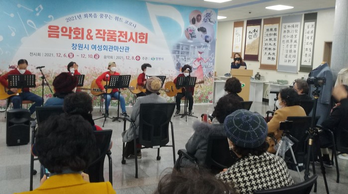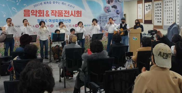 [로컬세계 한용대 기자]경남 창원시 여성회관 마산관은 8일 점심시간을 이용해 여성회관 1층 로비에서 수강생과 외부전문가가 참여하는 ‘2021년 회복을 꿈꾸는 위드코로나 음악회’를 개최했다.