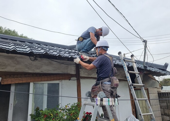 ▲ 강원랜드 사회공헌재단이 진행하는 주거환경 개선 사업 시공 현장. 강원랜드 제공 |