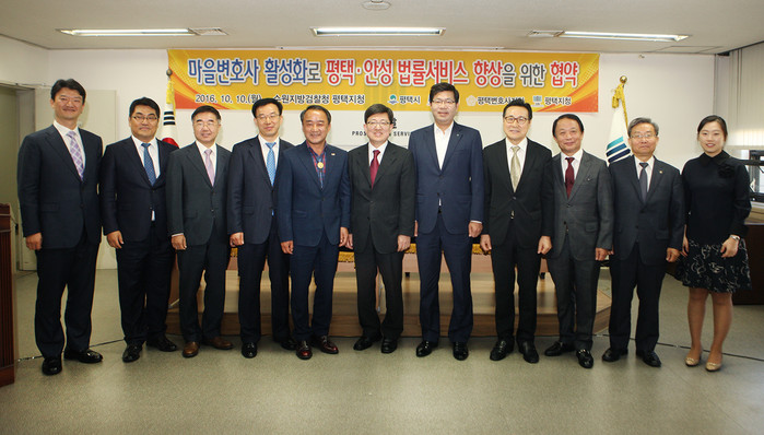 수원지방검찰청 평택지청은 10일 평택시와 안성시, 경기중앙지방변호사회 평택지회와 함께 마을변호사 제도의 활성화를 위해 ‘평택·안성지역의 법률서비스 향상을 위한 업무협약’을 체결했다.