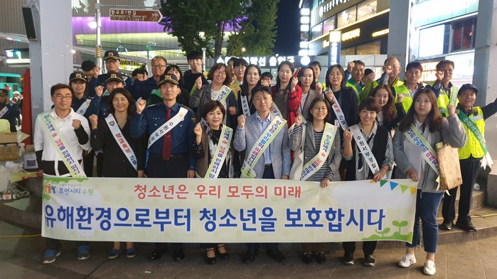 이번 단속에는 수원시를 비롯한 수원서부경찰서, 수원시교육지원청, 경기도 특별사법경찰단, 민간 유해환경 감시단체(우리누리청소년회·인구보건복지협회 경기도지회 등 6개 단체) 관계자 50여 명이 참여했다.