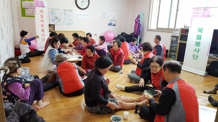 찾아가는 봉사단은 자원봉사종합센터에서 육성한 전문자원봉사단으로 쑥뜸, 귀반사, 네일아트 세분야로 구성돼 있다.