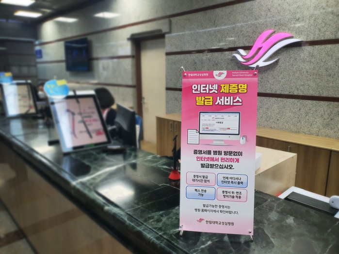 ▲한림대학교성심병원이 ‘인터넷 제증명 발급 서비스’를 오픈했음을 안내하고 있다. |