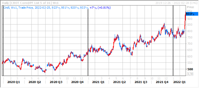 | ▲2020~2022년 옥수수 선물가격 |