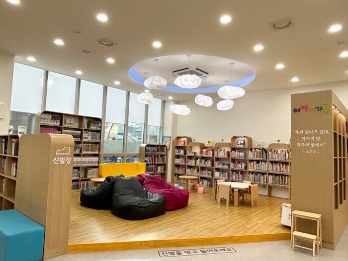 이번 리모델링을 통해 어린이자료실은 확장 및 구조변경으로 창의적이고 안전한 공간으로 탈바꿈하였고, 연속간행물실은 개방형 자료실인 ‘북 라운지’로 변경해 간행물 및 디지털 기기를 이용할 수 있는 복합문화공간으로 조성했다.