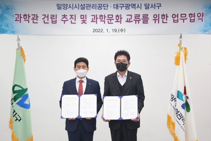 [로컬세계 박세환 기자]대구 달서구는 지난 19일 밀양아리랑우주천문대(밀양시시설관리공단)와 과학관의 건립 추진을 위해 업무협약(MOU)을 체결했다고 20일 밝혔다.