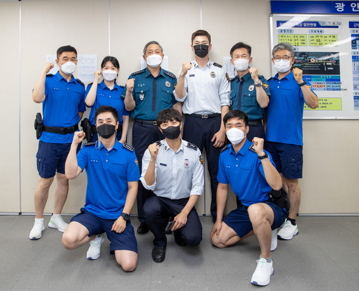 ▲이규문 부산경찰청장이 지난 16일 취임 후 첫 치안현장 방문지로 해운대와 광안리 여름경찰서를 방문해 직원들의 노고를 격려했다. 부산경찰청 제공 |