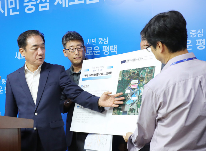 [로컬세계 고용주 기자]경기 평택시가 23일 언론브리핑에서 안중출장소 신축 부지를 평택화양지구 도시개발사업지구 내 공공청사 부지로 결정해 추진하겠다고 밝혔다.