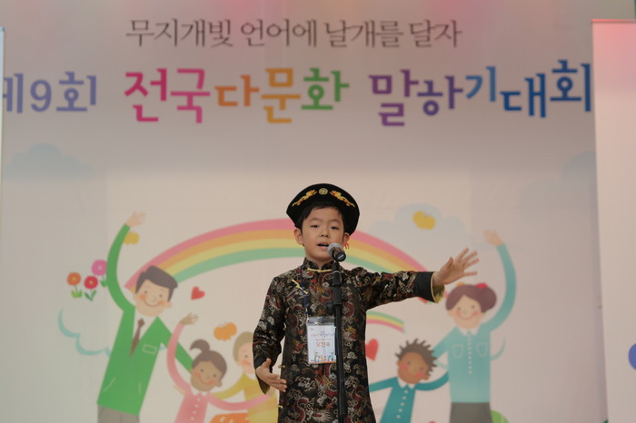 이날 열린 전국 다문화 말하기 대회는 외국인자녀들의 이중언어 말하기 대회가 먼저 진행돼 일본, 러시아, 중국, 베트남, 몽골, 파키스탄, 미얀마 등 외국인자녀 10명이 한국어와 각자의 모국어로 자유롭게 1분30초씩 발표했다.