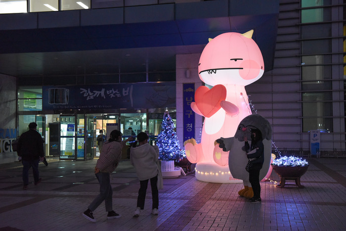 캐릭터 대형 풍선인형과, 성탄절 트리, 청사 앞 구민광장에 LED 조명 설치로 남구청사 자체를 포토존으로 활용하고, 반짝반짝 빛나는 불빛과 함께 보는 이들에게도 기쁨이 가득하길 바라는 염원을 담았다.