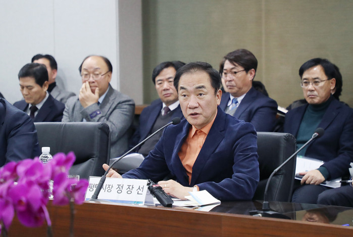 | ▲정장선 시장이 9일 시청 종합상황실에서 ‘신년 기자간담회’를 진행하고 있다.(평택시 제공) |
