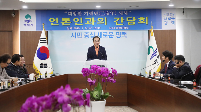 경기 평택시가 희망찬 기해년 새해를 맞아 9일 시청 종합상황실에서 언론인 70여 명이 참석한 가운데 ‘신년 기자간담회’를 열고 민선7기 지난 6개월간의 변화와 2019년 시정 운영방향을 밝혔다.