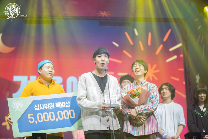 ▲예스24라이브홀에서 개최된 ‘2019 EBS 올해의 헬로루키 with KOCCA’ 중 ‘겨울에서봄’ 심사위원 특별상 수상 장면. |