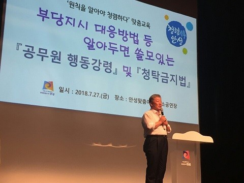 우석제 시장은 이날 교육에 참석해 “이번 교육이 청렴한 공직 문화 조성에 도움이 되길 바란다"며 "더불어 공무원과 시민이 함께하는 행복한 안성만들기를 위해 힘써줄 것"을 당부했다.