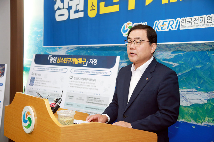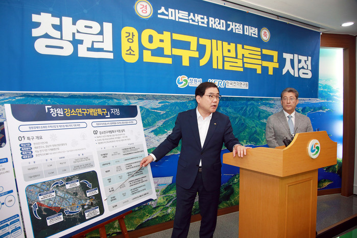 허성무 창원시장은 20일 최규하 한국전기연구원장과 함께 ‘창원 강소연구개발특구(이하 강소특구)’의 추진과정과 지역산업경제에 미칠 영향을 상세히 설명하고, 향후 운영방향과 후속조치계획을 내놓았다.